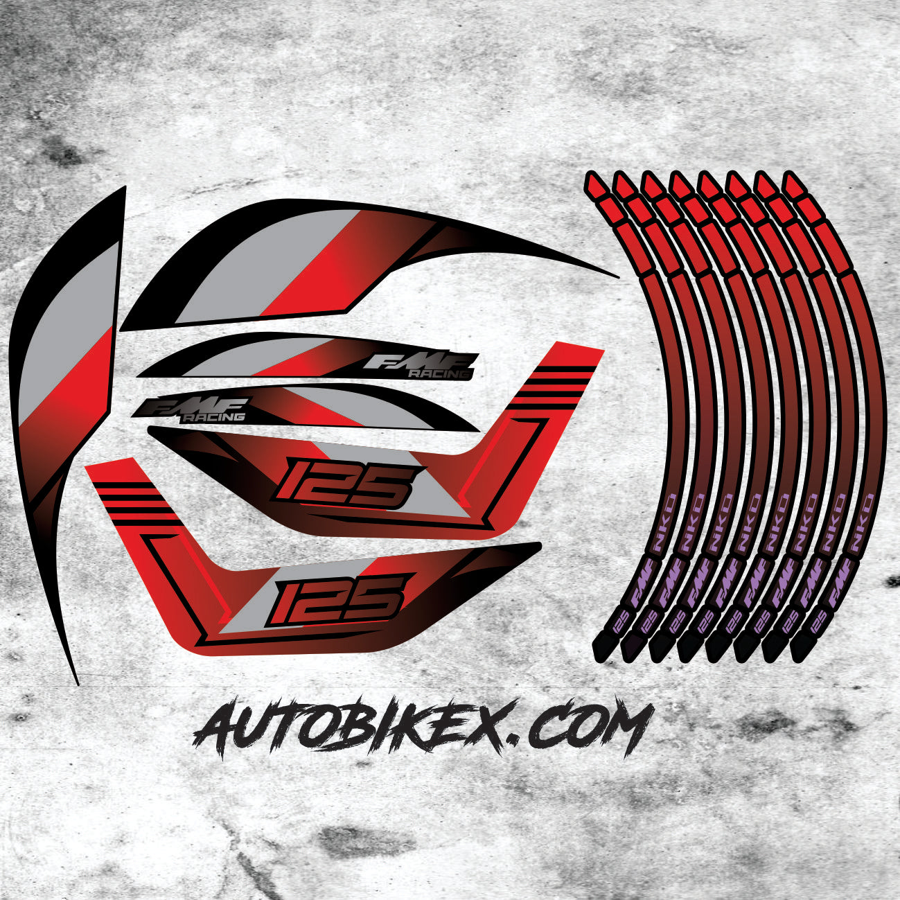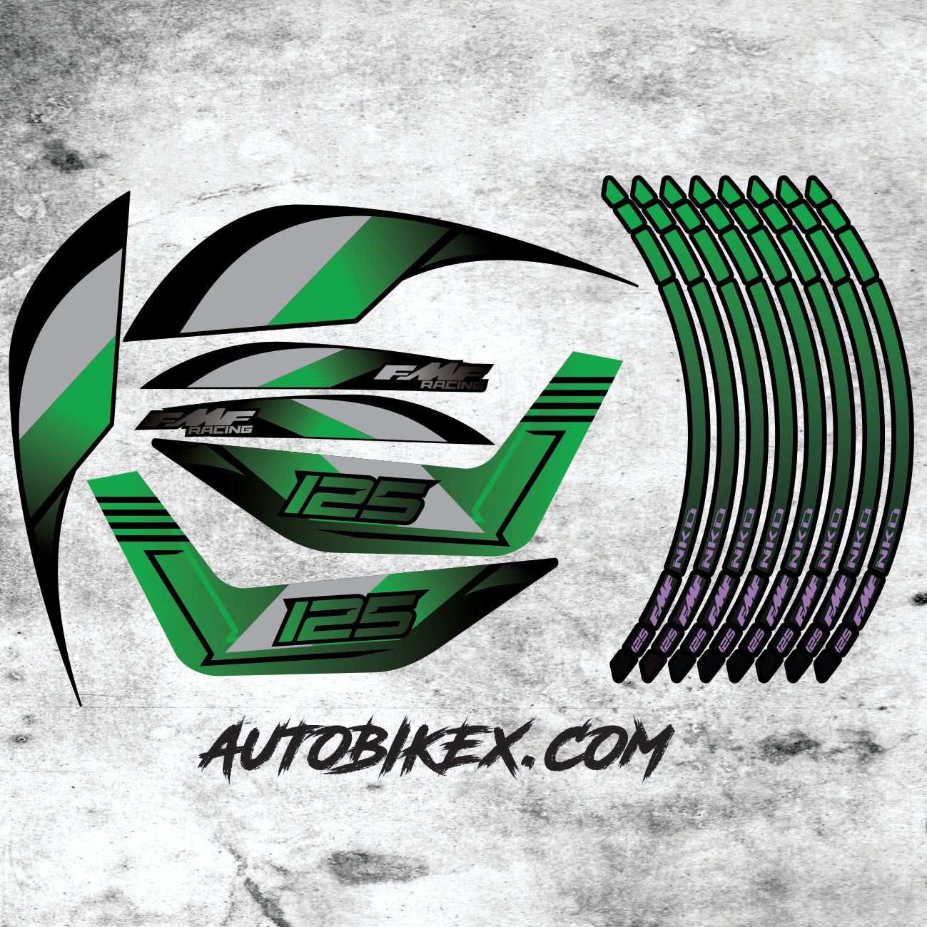 - Los materiales de los gráficos son Premium Grade vinyl, tintas latex ink HP impresion en alta resolución laminados para proteger la impresión, no se despintan y puede ser terminado mate o brillante, las piezas ya vienen cortadas a la forma de la moto para fácil instalación.
